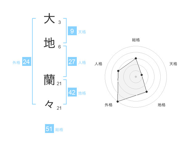 大地 蘭々さんの総格は51画の3点!