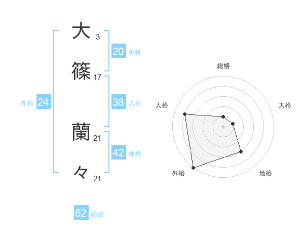 大篠 蘭々さんを姓名の画数から五運を鑑定