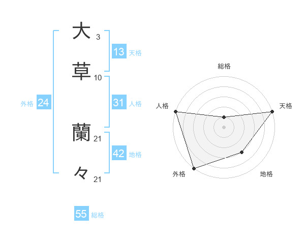 大草 蘭々さんの天格は13画の5点!
