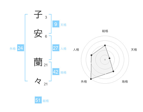 子安 蘭々さんの外格は24画の5点!