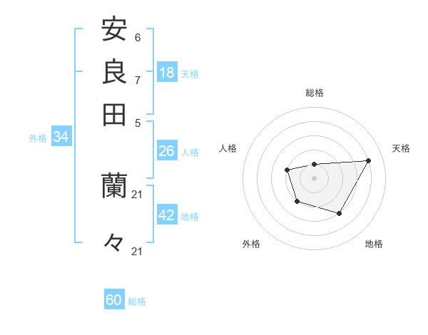 安良田 蘭々さんを姓名の画数から五運を鑑定