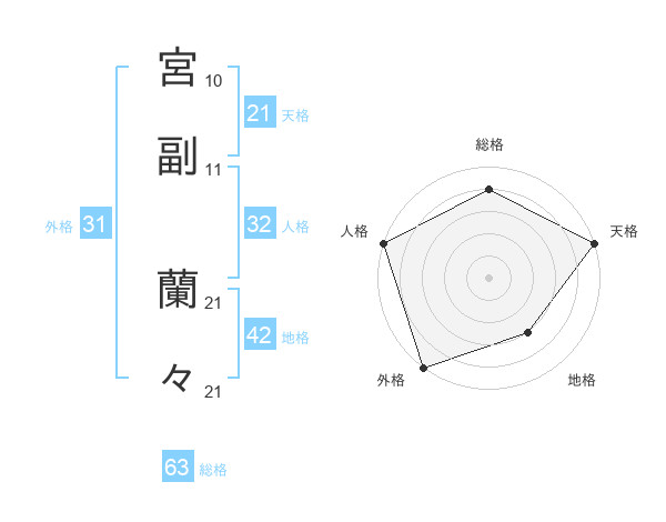 宮副 蘭々さんの総格は63画の4点!