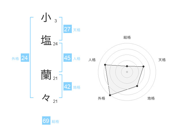 小塩 蘭々さんを姓名の画数から五運を鑑定