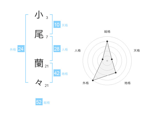 小尾 蘭々さんの総格は52画の4点!