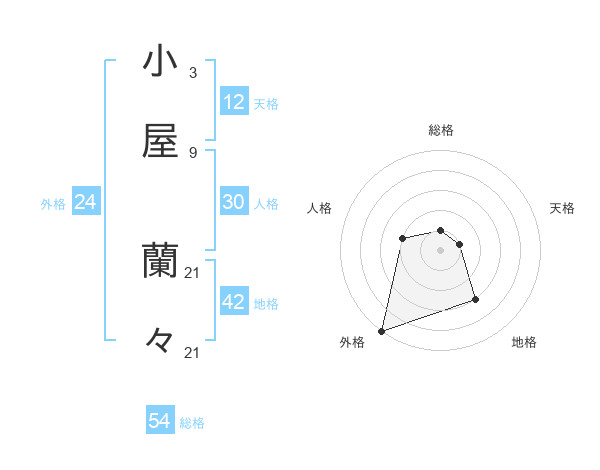 小屋 蘭々さんの外格は24画の5点!
