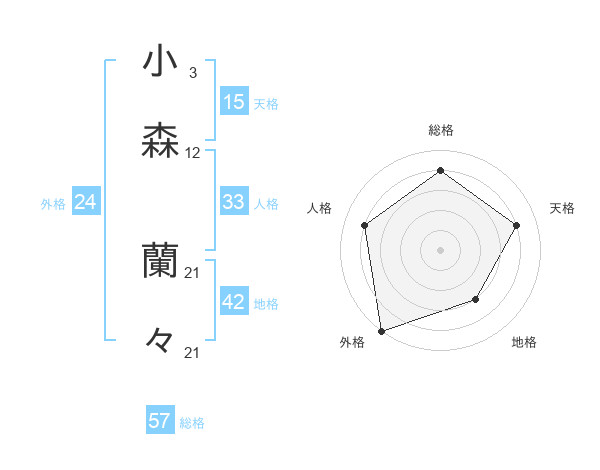 小森 蘭々さんを姓名の画数から五運を鑑定