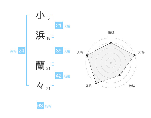 小浜 蘭々さんの総格は63画の4点!