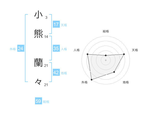 小熊 蘭々さんの総格は59画の1点!