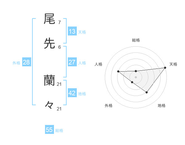 尾先 蘭々さんの天格は13画の5点!
