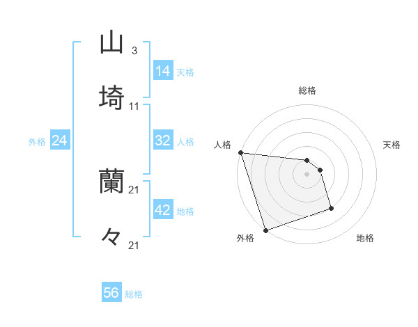 山埼 蘭々さんを姓名の画数から五運を鑑定