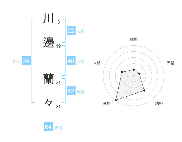 川邊 蘭々さんを姓名の画数から五運を鑑定