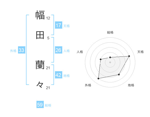 幅田 蘭々さんの天格は17画の4点!