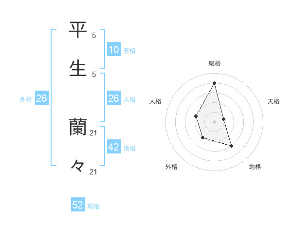 平生 蘭々さんの総格は52画の4点!
