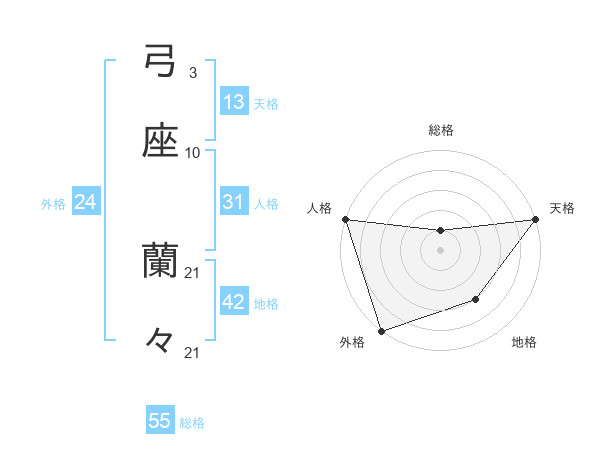 弓座 蘭々さんの総格は55画の1点!