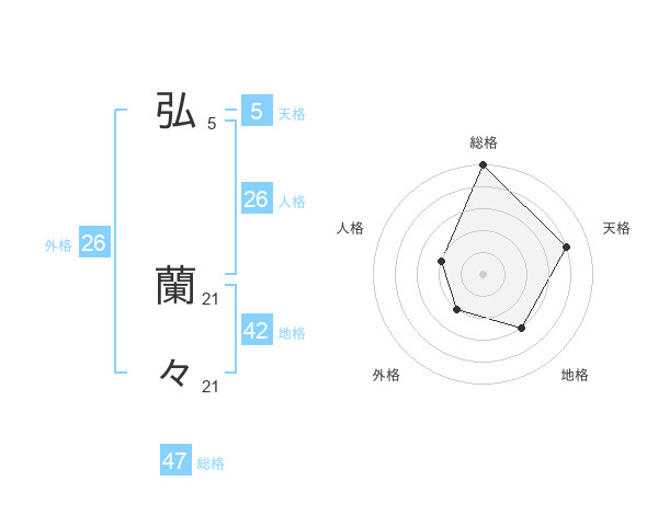 弘 蘭々さんを姓名の画数から五運を鑑定