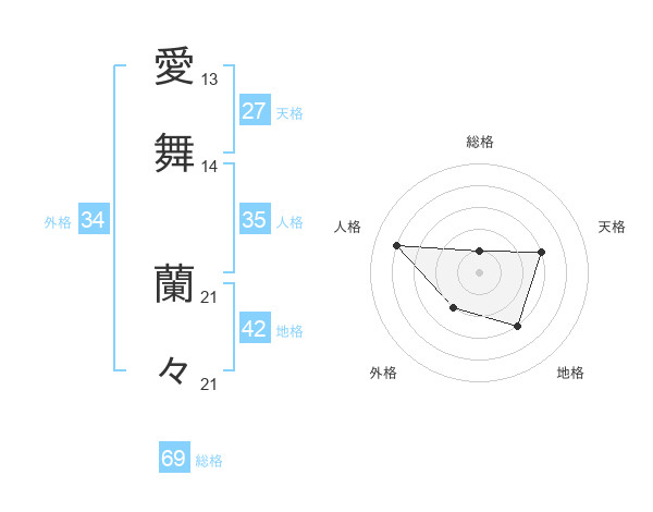 愛舞 蘭々さんの総格は69画の1点!