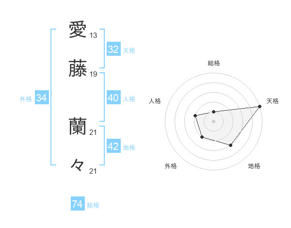 愛藤 蘭々さんの総格は74画の1点!