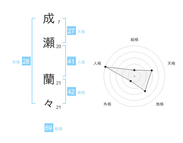 成瀬 蘭々さんを姓名の画数から五運を鑑定