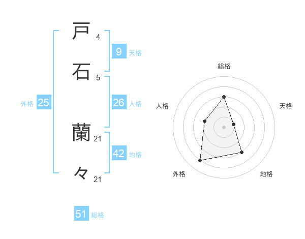 戸石 蘭々さんを姓名の画数から五運を鑑定
