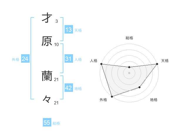 才原 蘭々さんの総格は55画の1点!