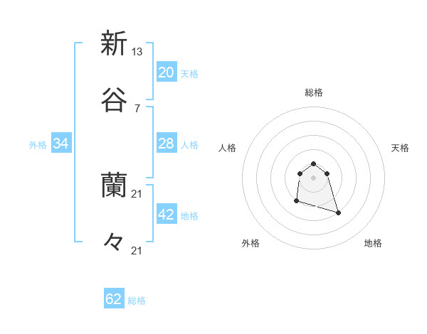 新谷 蘭々さんの天格は20画の1点!