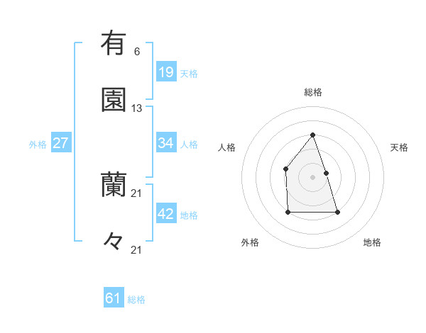 有園 蘭々さんの総格は61画の3点!