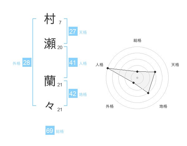 村瀬 蘭々さんの総格は69画の1点!