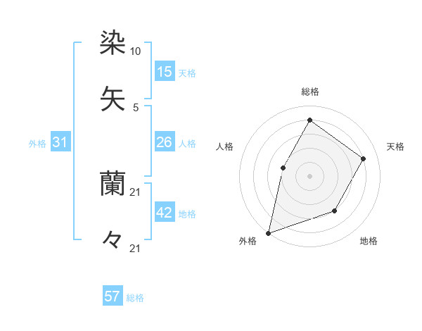 染矢 蘭々さんを姓名の画数から五運を鑑定