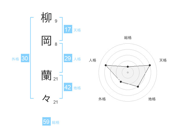 柳岡 蘭々さんを姓名の画数から五運を鑑定