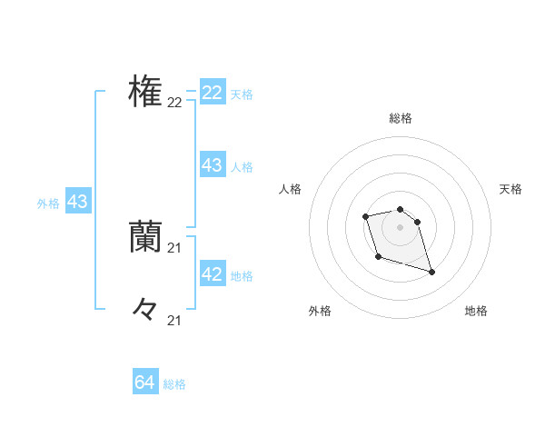 権 蘭々さんの天格は22画の1点