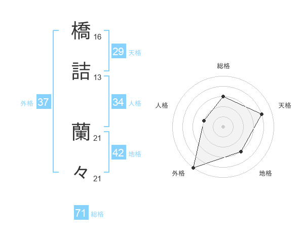 橋詰 蘭々さんを姓名の画数から五運を鑑定