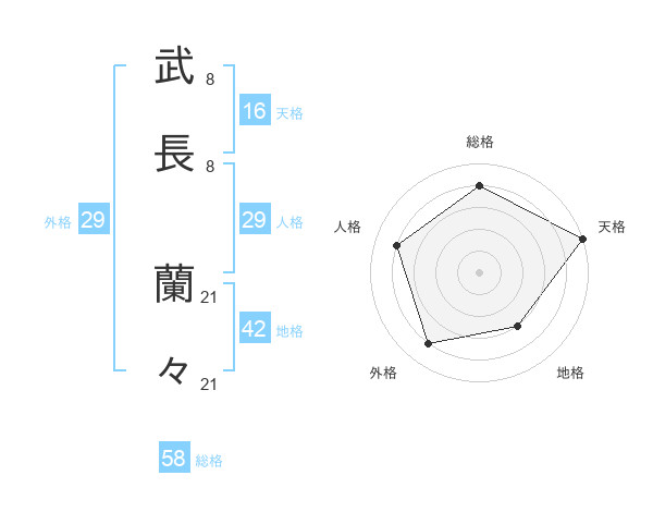 武長 蘭々さんの総格は58画の4点!