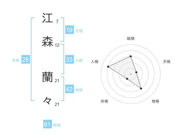 江森 蘭々さんを姓名の画数から五運を鑑定
