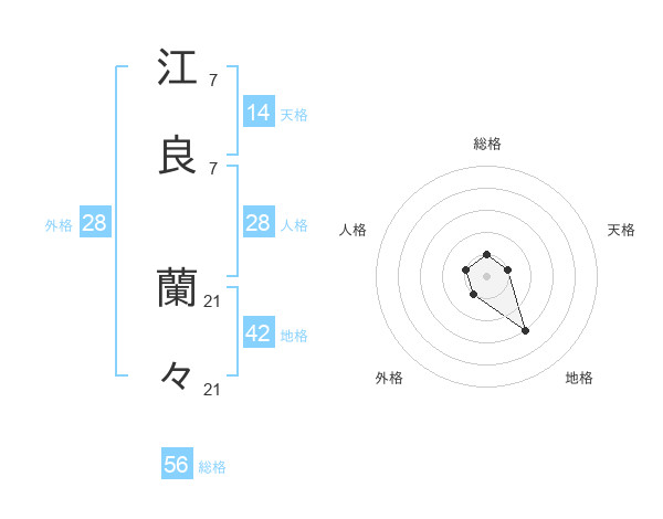 江良 蘭々さんを姓名の画数から五運を鑑定