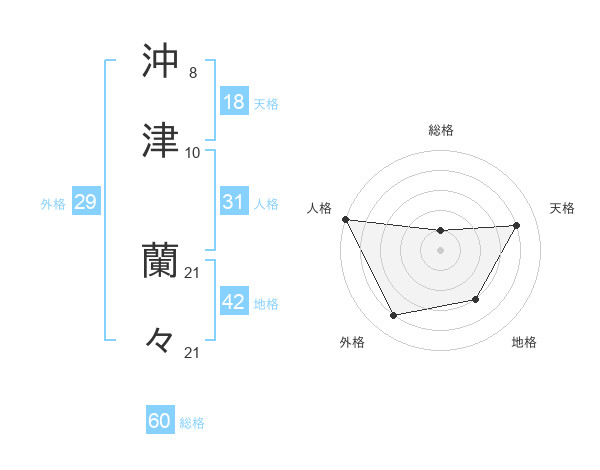 沖津 蘭々さんの総格は60画の1点!