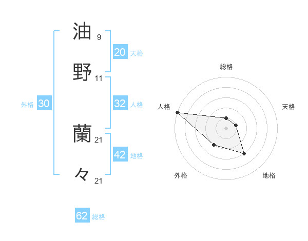 油野 蘭々さんの総格は62画の1点!