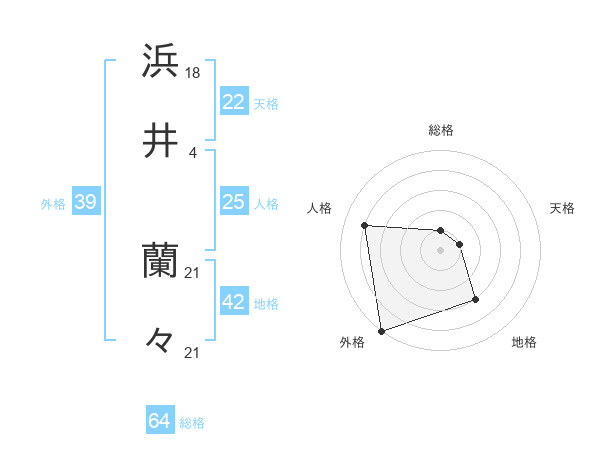 浜井 蘭々さんの外格は39画の5点!