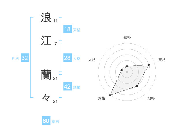 浪江 蘭々さんを姓名の画数から五運を鑑定