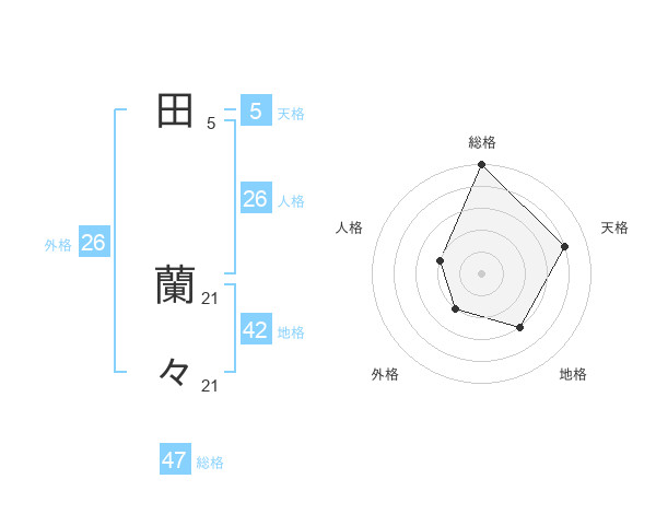 田 蘭々さんの総格は47画の5点!