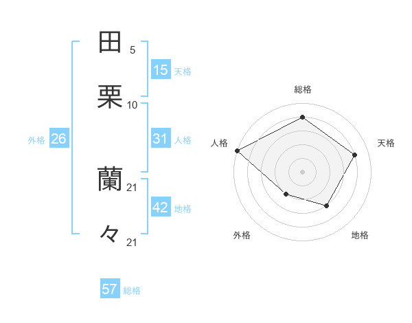 田栗 蘭々さんを姓名の画数から五運を鑑定