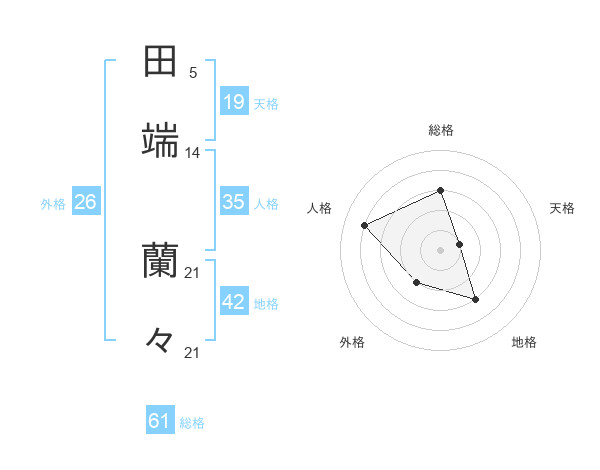 田端 蘭々さんを姓名の画数から五運を鑑定