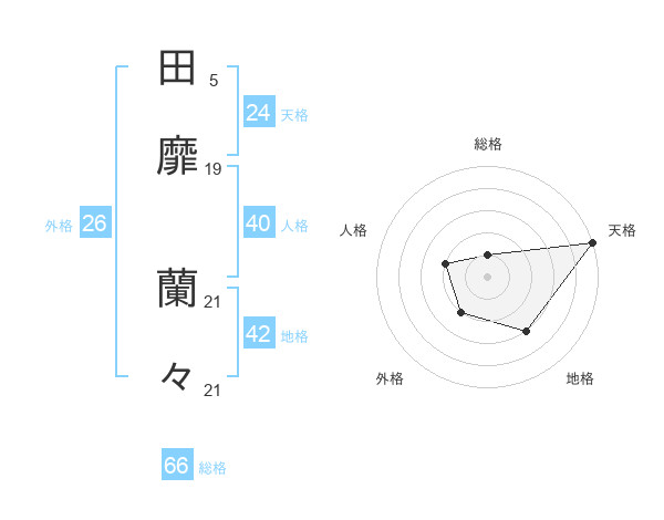 田靡 蘭々さんの天格は24画の5点!