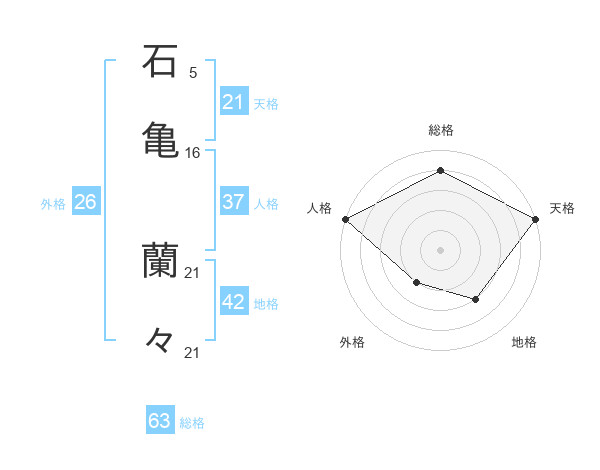 石亀 蘭々さんを姓名の画数から五運を鑑定