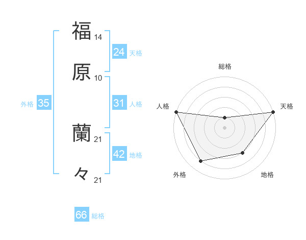 福原 蘭々さんの総格は66画の1点!
