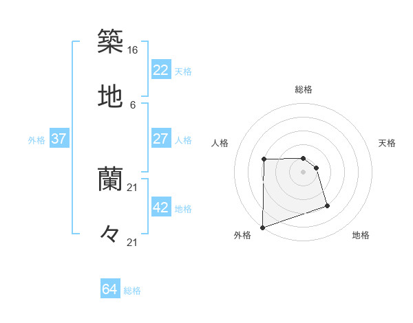 築地 蘭々さんを姓名の画数から五運を鑑定