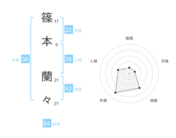 篠本 蘭々さんの外格は38画の4点!