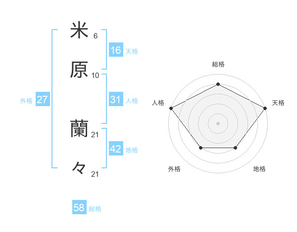 米原 蘭々さんを姓名の画数から五運を鑑定
