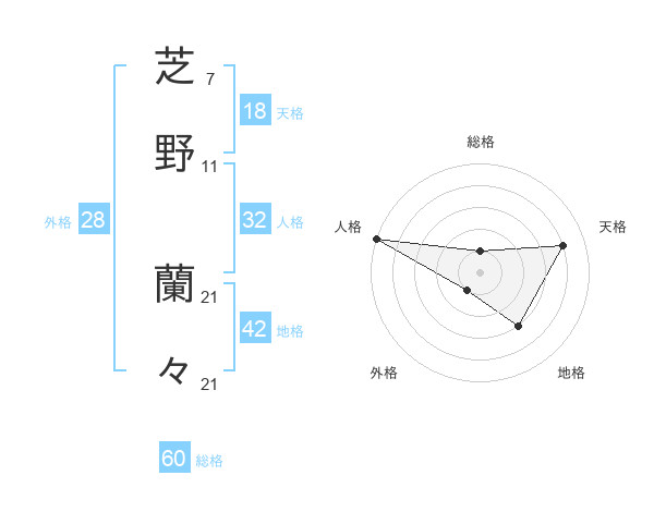 芝野 蘭々さんを姓名の画数から五運を鑑定