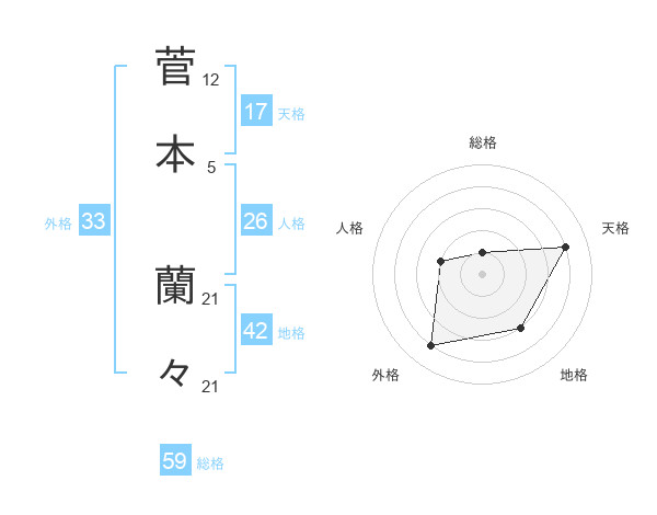 菅本 蘭々さんの天格は17画の4点!
