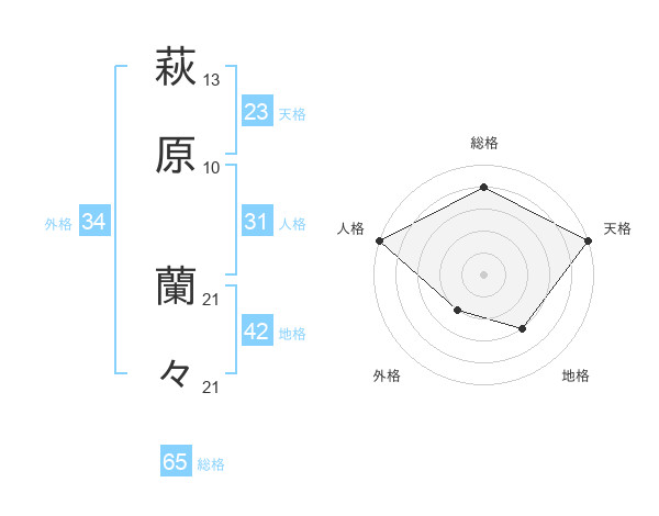萩原 蘭々さんの総格は65画の4点!